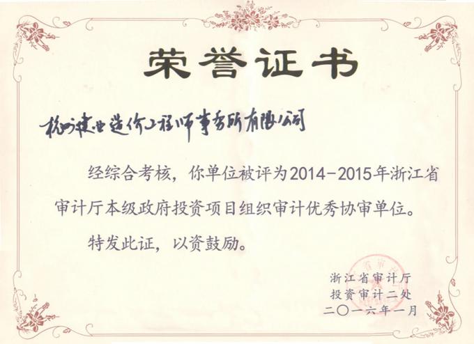 审计厅2014-2015获奖证书